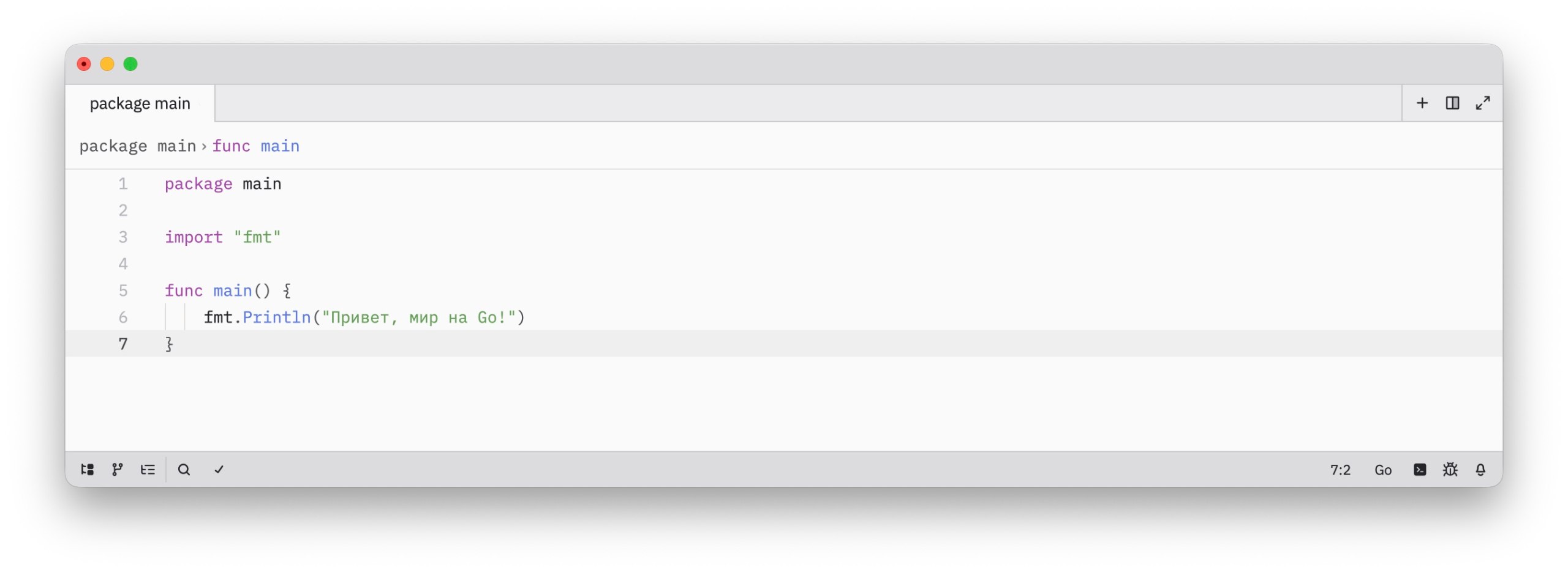 3. Напишите и запустите код: создайте файл с именем hello.go и добавьте туда следующий код: